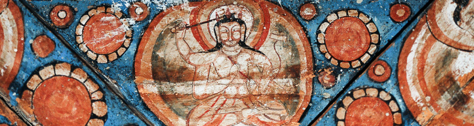 - On the date of this collection of legends see Dowman, Keith. Masters of Mahamudra. Songs and Histories of the Eighty-Four Buddhist Siddhas. New York: State University of New York Press, 1985: Appendix 1, 384-388. Note that this collection came together at the time of Padampa Sangye, who is depicted three times at Alchi, once with the other siddhas on the dhoti in the Sumtsek Mañjuśrī to symbolise the transmission of this tradition to Tibet. Van Ham’s claim that this image has been repainted (p. 53) is not substantiated in any way and disregards the depiction of the same siddha in other monuments of Alchi, including the Shangrong temple.^