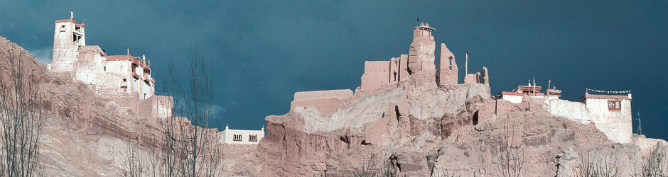 Basgo is, of course, known for its castle ruin and the adjoining three royal temples, all dedicated to the Bodhisattva Maitreya, spectacularly located on the rocks above the village (see the images of ◊ Basgo). Besides those later monuments the Basgo area preserves a number of structures going back to the 11th and 13th centuries, and two of these are documented here, namely an