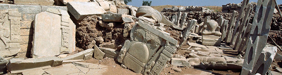 Not directly working on any related material it was less the sensational scientific value of the find as such that was decisive for my subsequent visit to the site half a year later, but the fact that this was an opportunity for me to see a major Buddhist site during an excavation and the hope to see the archaeologists at work. Since Ajay Shankar had a much more open policy towards the accessibility of unpublished sites, as his presentation of new sites at Leiden also expressed, and since he knew me from my work in the Western Himalayas and discussions about conservation issues there, I took the opportunity to ask him for permission to visit and photograph the site for research purposes. The permission was granted and travel plans quickly made to visit the place in the first days of the new millennium, that is early January 2000. The resulting documentation of the site is now available in a picture gallery (◊ Kanaganahalli).
