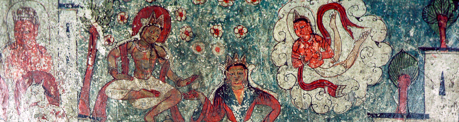 There are three picture narratives in the Tabo Main Temple, Sudhana's Pilgrimage and the Life of the Buddha in the Assembly Hall, and the story of Sadāprarudita (རྟག་ཏུ་ངུ་) in search for the Perfection of Wisdom in the Ambulatory. The following narrates the identification of the story, while the story itself accompanies the pictures in the ◊ Sadāprarudita gallery.