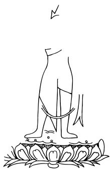 Below is my somewhat disproportionate reconstruction of one of a standing Bodhisattvas of the orginal paint layer. The lower area is better defined as many more traces remain at the bottom of the wall.
